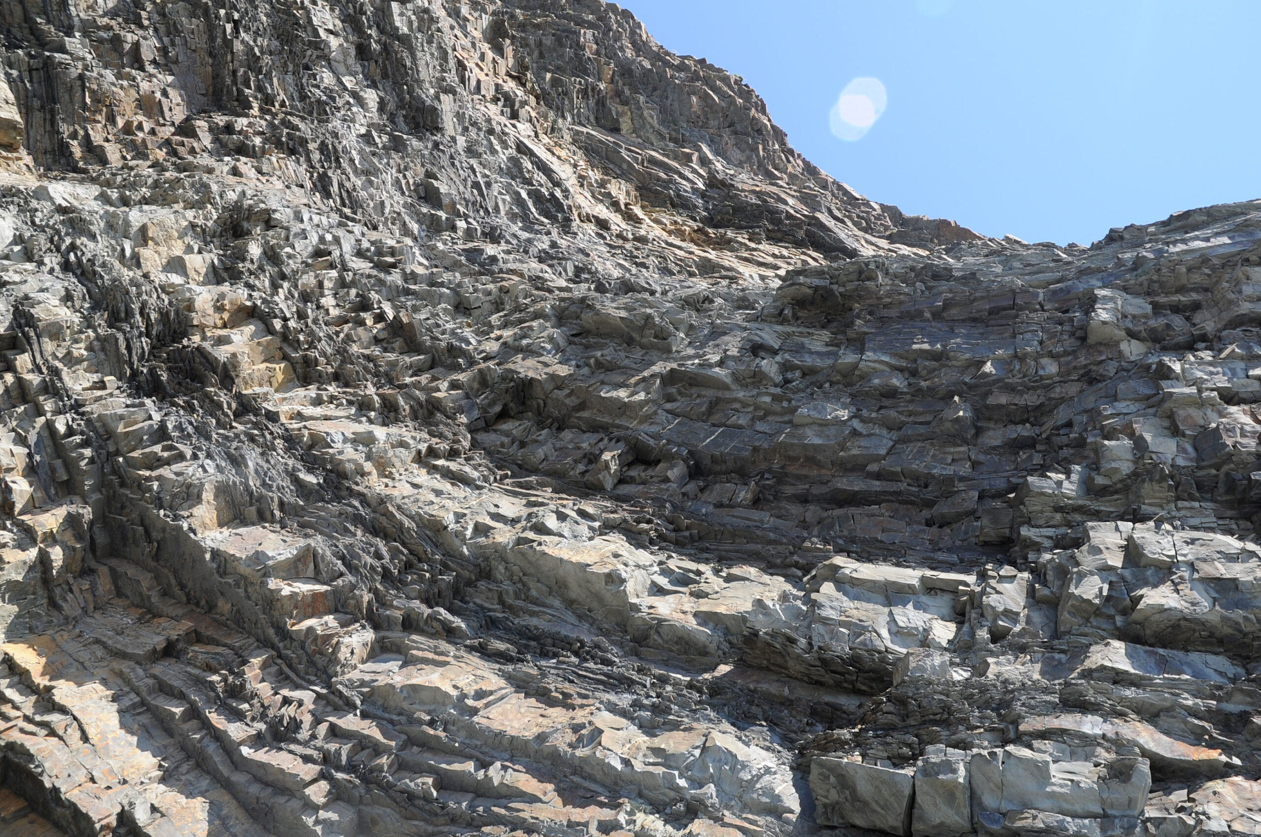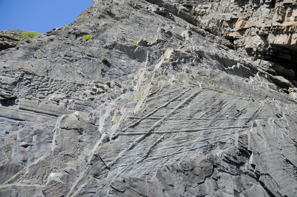 Slightly to the south of the furthermost point of Hartland Peninsula on the North Devon coastline are the spectacularly folded and tilted cliffs at Hartland Quay. Like a series of great chevrons in a sequence of alternating shales and sandstones the ancient rocks appear inert, fixed in their materiality since turning to stone. Standing as the eroded roots of ever-changing, ancient mountains formed 300 million years ago as the supercontinents collided during unfathomable transformations taking place across deep geological timescales, the cliffs remain in flux –
