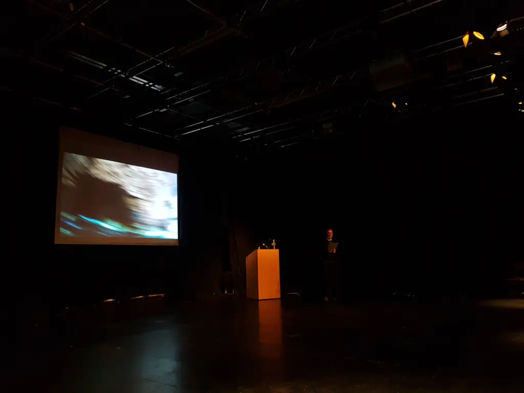 Sirens: crossing thresholds of multi-entity ethics (2022) performance and film lecture (image credit Gwena Harman)